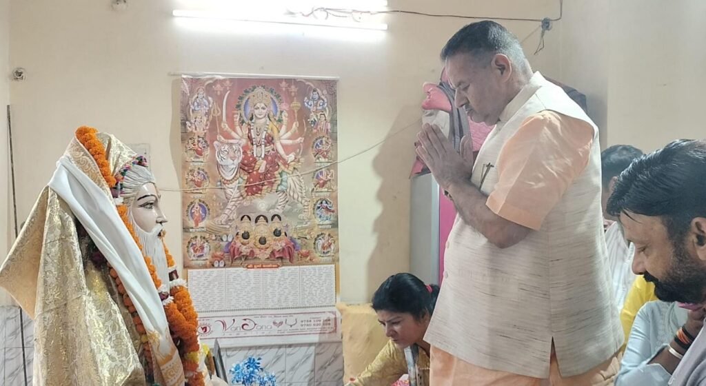 On the occasion of Maharishi Valmiki Jayanti today, Cabinet Minister Ganesh Joshi visited the temple on Kalidas Marg and paid his respects by garlanding and offering flowers to the statue of Maharishi Valmiki. On this occasion, Cabinet Minister Ganesh Joshi said that by composing the immortal text Ramayana, Maharishi Valmiki spread the ideals and life values of Maryada Purushottam Lord Shri Ram to the masses. His life symbolizes truth, dignity, and devotion to religion. He said that Maharishi Valmiki’s words still inspire us to follow the path of equality, service, and harmony in society. His teachings are a guide for us and an invaluable heritage of Indian culture. Minister Joshi said that the life of Maharishi Valmiki, who preached equality, service, and harmony in society, is a source of inspiration for all of us. Division President Pradeep Rawat, Dr. Babita Sahotra, Bhavana Chaudhary, Satendra Nath, and local people were present on this occasion.
