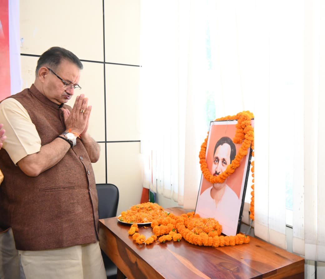 Cabinet Minister Ganesh Joshi paid a heartfelt tribute to Pandit Deendayal Upadhyaya by offering flowers to his portrait at the camp office today on the occasion of his birth anniversary. He stated that Pandit Deendayal Upadhyaya’s life inspires integral humanism, nationalism, and service. Joshi stated that Upadhyaya’s ideals continue to guide us today, and his policies pave the way for the benefit of the “last person in need.” He stated that under the leadership of Prime Minister Narendra Modi, the central and state governments are continuously working to realize Pandit Deendayal Upadhyaya’s dreams. He also urged party workers to embrace Upadhyaya’s ideals and play an active role in social service and nation-building. Mandal President Pradeep Rawat, Poonam Nautiyal, Bhavana Chaudhary, Amit Kumar, and many others were present on the occasion