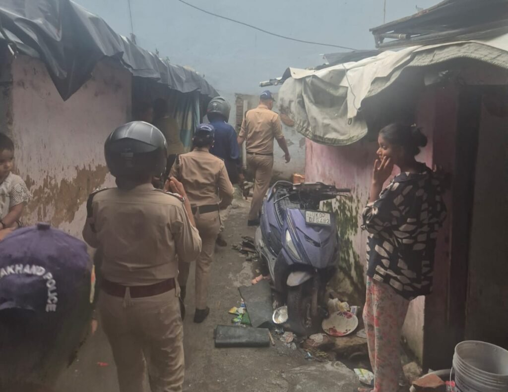 Taking seriously the complaints received regarding drug business in slums/slums, SSP Dehradun directed all subordinate officers to conduct surprise checking campaigns to catch drug smugglers. In this sequence, today on 14/07/2025, under the leadership of the City Magistrate, a surprise checking was done in Madrasi Colony under the Kotwali area by the team of local police, PAC, dog squad and ANTF Dehradun. During the checking, the police force conducted surprise checking with the help of sniffer dogs at the houses and suspicious places of drug smugglers involved in drug trafficking in the Madrasi Colony area.