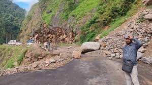 Uttarkashi: Due to landslide, about 10 meters of Gangotri Highway collapsed in Bhatwadi. The highway is getting obstructed repeatedly. The work of making the route smooth by BRO is going on. Police force is on the spot. As soon as the highway opens, the stranded passengers are being evacuated.