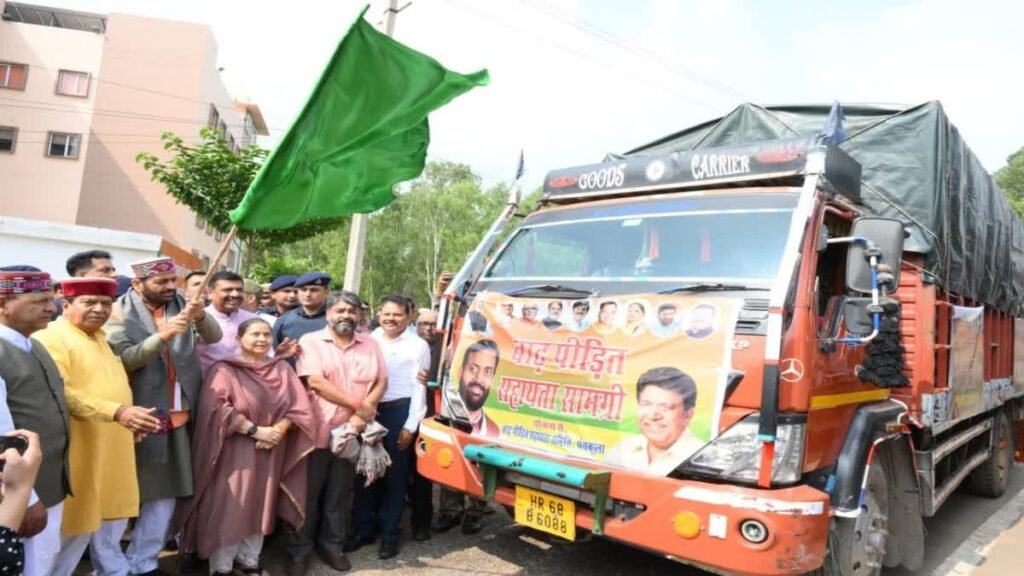 Panchkula: A situation of constant concern prevails in Punjab and Himachal Pradesh, which are facing the brunt of natural disaster. People have become homeless, even the food grains of the houses have been washed away in the water. Livestock has been lost. As a result, while Haryana Chief Minister Naib Singh Saini had written a letter to the Punjab Chief Minister for help a few days ago, he flagged off 25 trucks full of relief material for the flood victims in Punjab and Himachal Pradesh from the BJP state office ‘Panchkamal’ in Panchkula today, Sunday morning. He assured further help in this terrible situation of disaster.