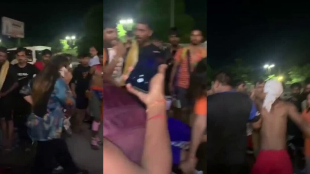 Kanwariyas beat up a bike rider: It is being told that last evening, on Thursday, at the Narsan border, Kanwariyas had a quarrel with a bike rider over some trivial matter. After this, the Kanwariyas started beating the bike rider badly. Seeing the anger of the Kanwariyas, no one had the courage to save the bike rider. Somehow, the bike rider managed to save his life and run away from the Kanwariyas.