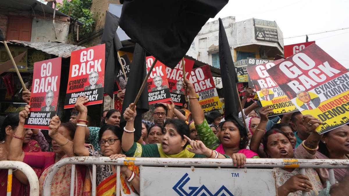 Kolkata: Chief Election Commissioner (CEC) of India, Gyanesh Kumar, arrived at the Kalighat Temple in South Kolkata on Monday morning to offer prayers. While on his way to the temple, he was shown black flags and protesters chanted “Go back.” Police forces present at the scene brought the situation under control, after which Gyanesh Kumar entered the temple and offered prayers.
