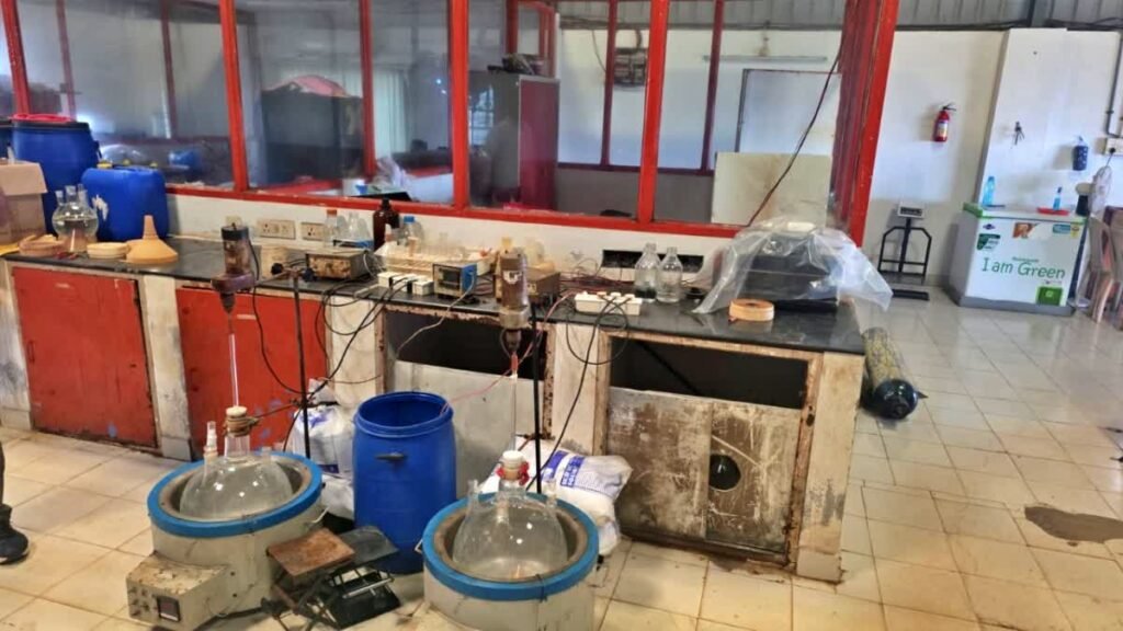 5.96 kg of mephedrine, 35,500 liters of chemical and 950 kg of raw material were seized from the industry, which is said to be worth Rs 11.58 crore. The accused were arrested on Friday evening and the case came to light on Saturday.