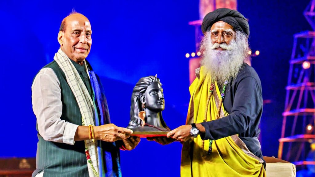 Coimbatore (Tamil Nadu): Defense Minister Rajnath Singh presented the first ‘Bhavya Bharat Bhushan’ awards during the Mahashivratri celebrations at the Isha Yoga Center here. These new awards, instituted by the Isha Foundation, recognize individuals who have made exceptional contributions to India’s progress in various fields, such as science, arts, sports, and military service.