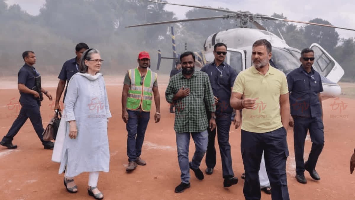 According to reports, Sonia and Rahul landed at Karipur Airport at 10 a.m. They arrived by helicopter at the government school grounds in Padinjarethra, Wayanad, and from there, they reached the hotel by road. They were welcomed by MP Priyanka Gandhi Vadra and KPCC President Sunny Joseph. Local MLA T. Siddiqui told ETV Bharat that no official program was scheduled.