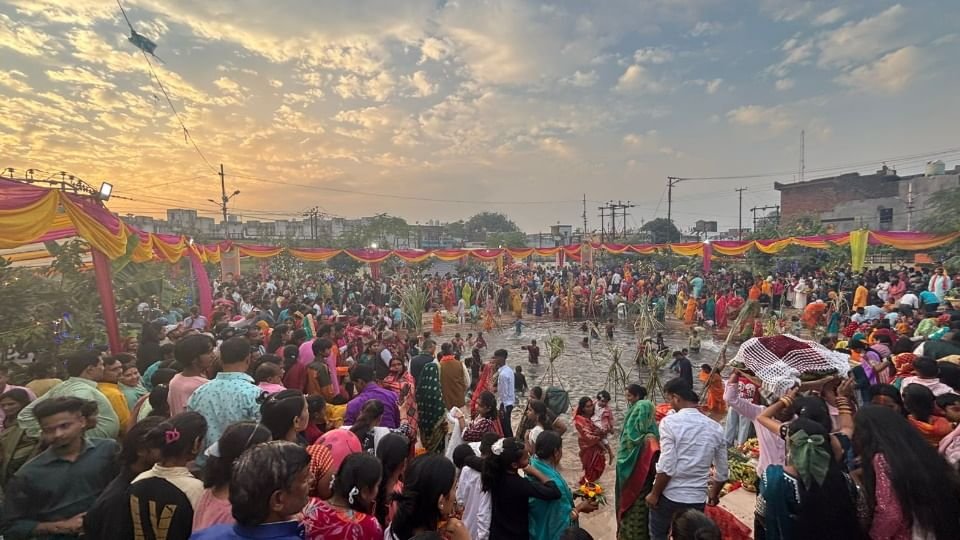 Today, devotees went to the Chhath ghats, stood in flowing water sources, and offered evening prayers to Lord Bhaskar as he set. During this time, devotees prayed for the happiness and prosperity of their families. Crowds thronged the ghats from the mountains to the plains.