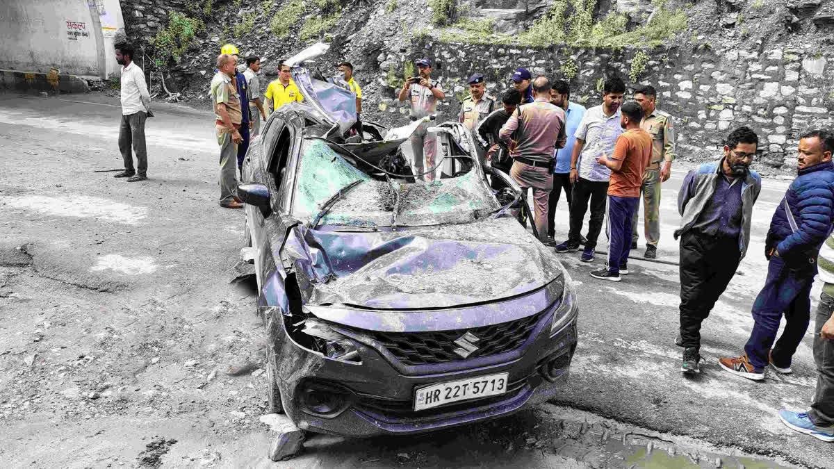 The car was completely damaged when it was hit by stones. A woman named Shilpa, a resident of Haryana, died in the accident. A child and a man trapped in the car were barely pulled out with the help of SDRF. They have been rushed to Peepalkoti Hospital for treatment.